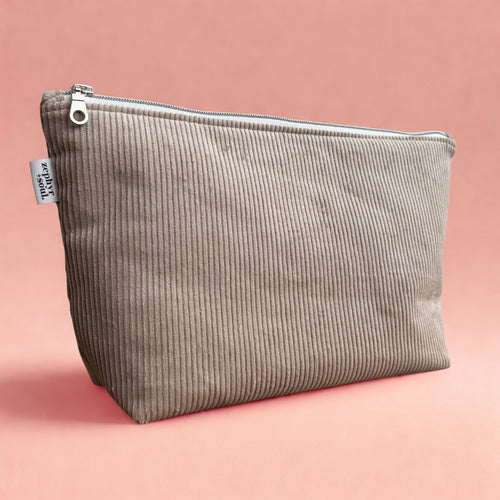 Taupe Corduroy - Makeup Bag - Zipper Pouch