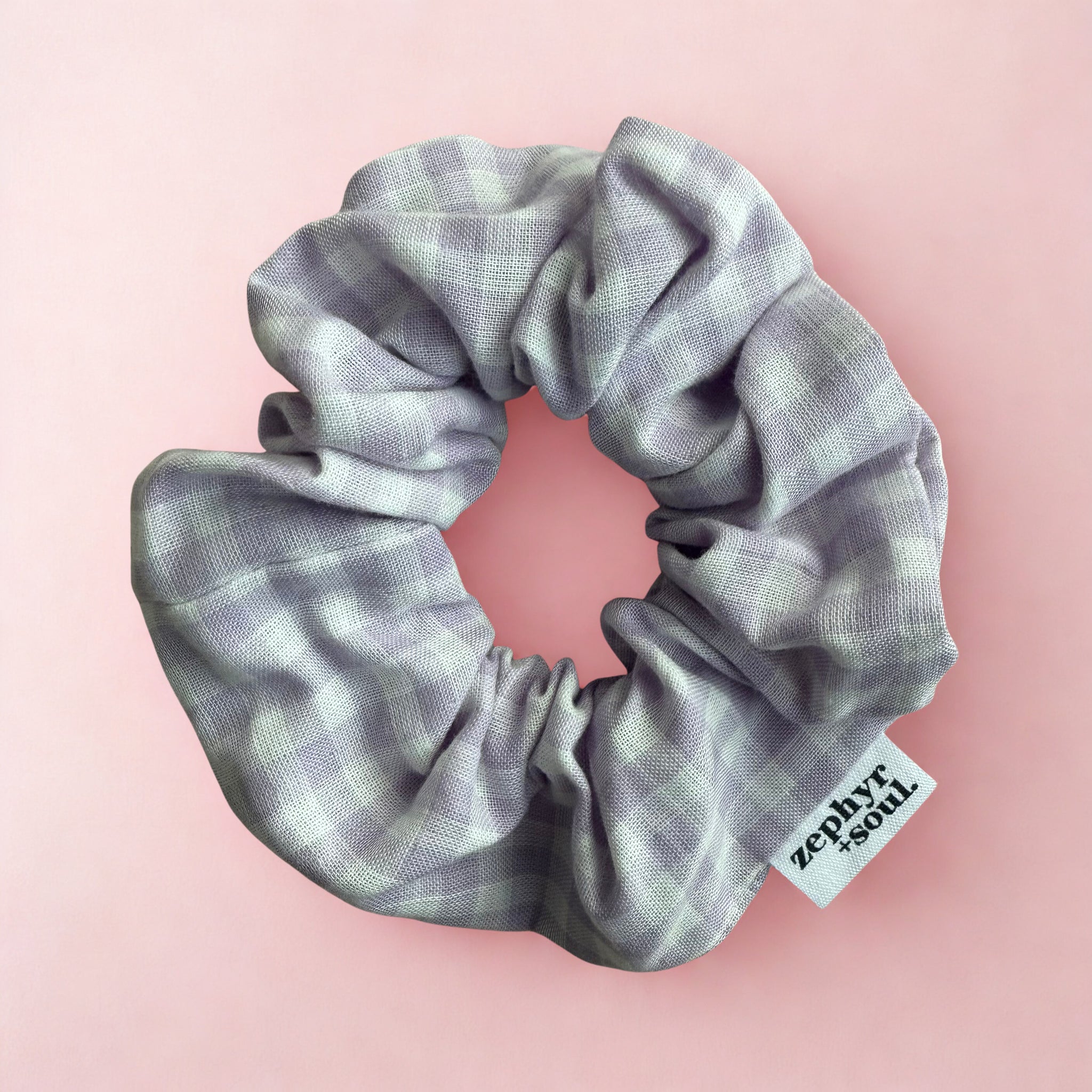 • Load image into Gallery viewer, Christmas Bauble - Lilac Gingham Scrunchie