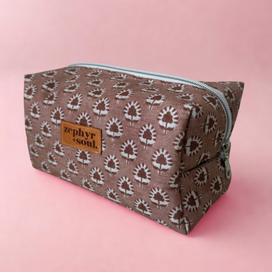 Chocolate Corduroy - Box Makeup Bag - Large