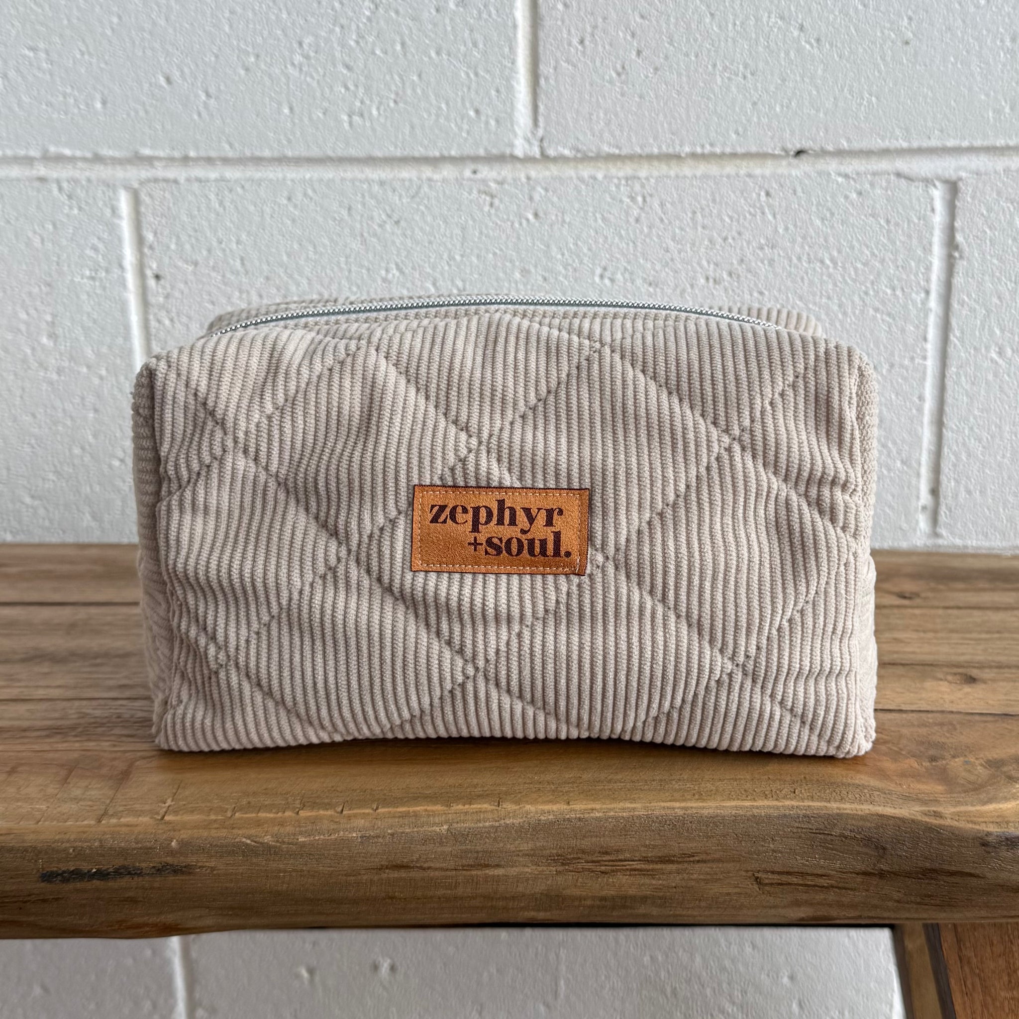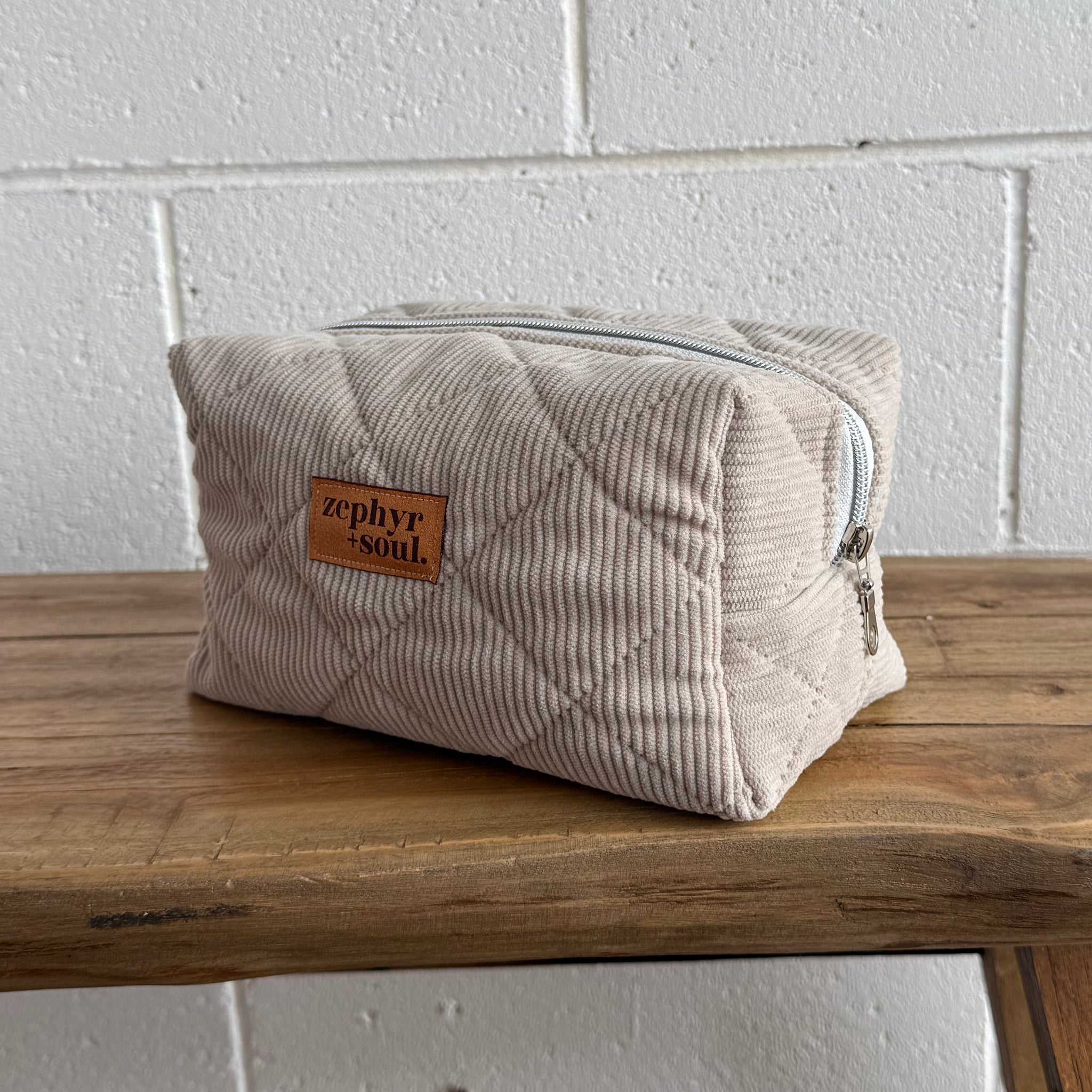 Beige Quilted Corduroy - Box Makeup Bag
